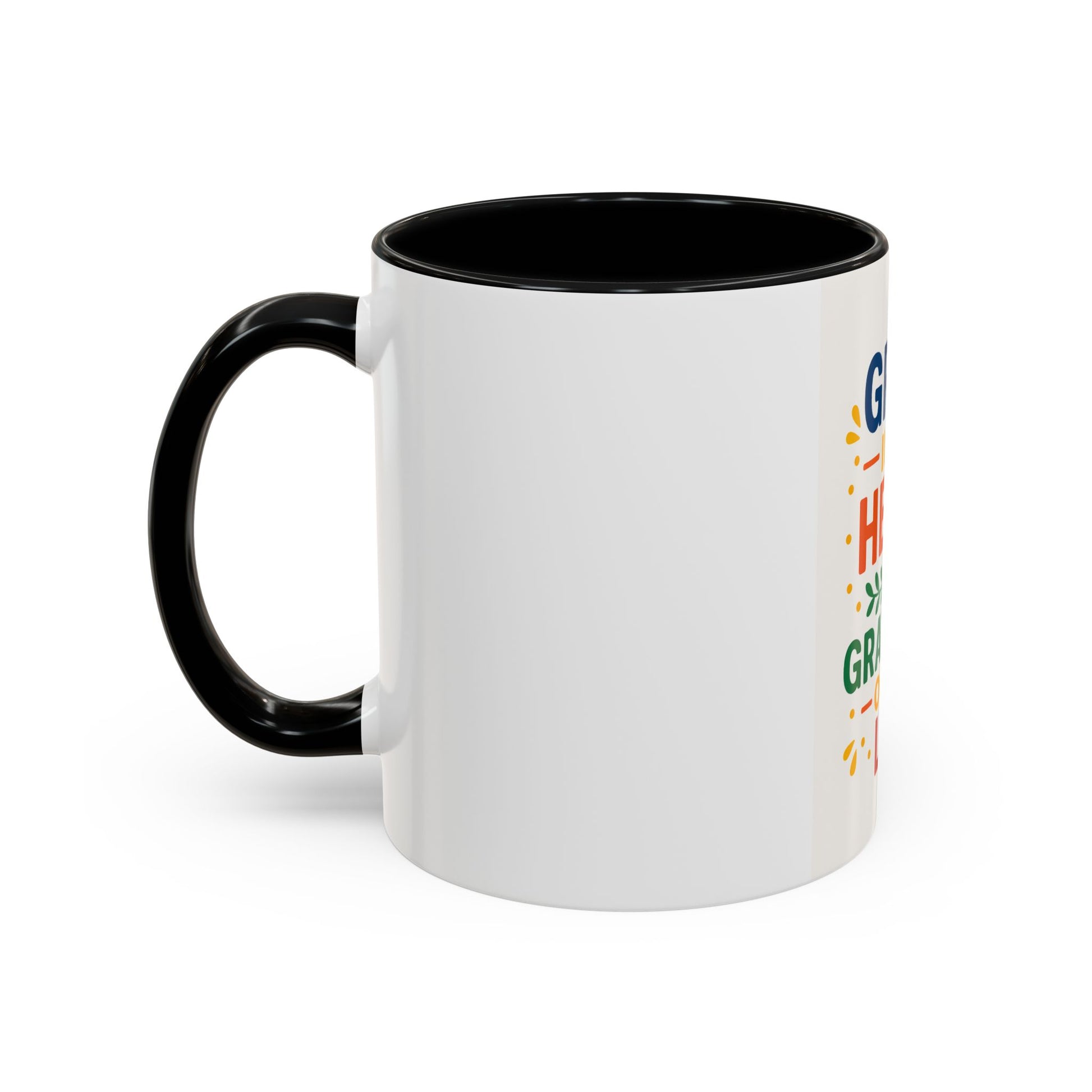 This inspirational mug is perfect for starting your day with a positive message. With the words 'Grace in my heart' printed on it, this mug exudes a peaceful and uplifting vibe. It can be a great addition to your daily morning routine or make a thoughtful gift for someone who needs a little extra encouragement. Ideal for those who enjoy inspirational quotes and uplifting messages. Perfect for occasions like birthdays, holidays, or just to show someone you care.