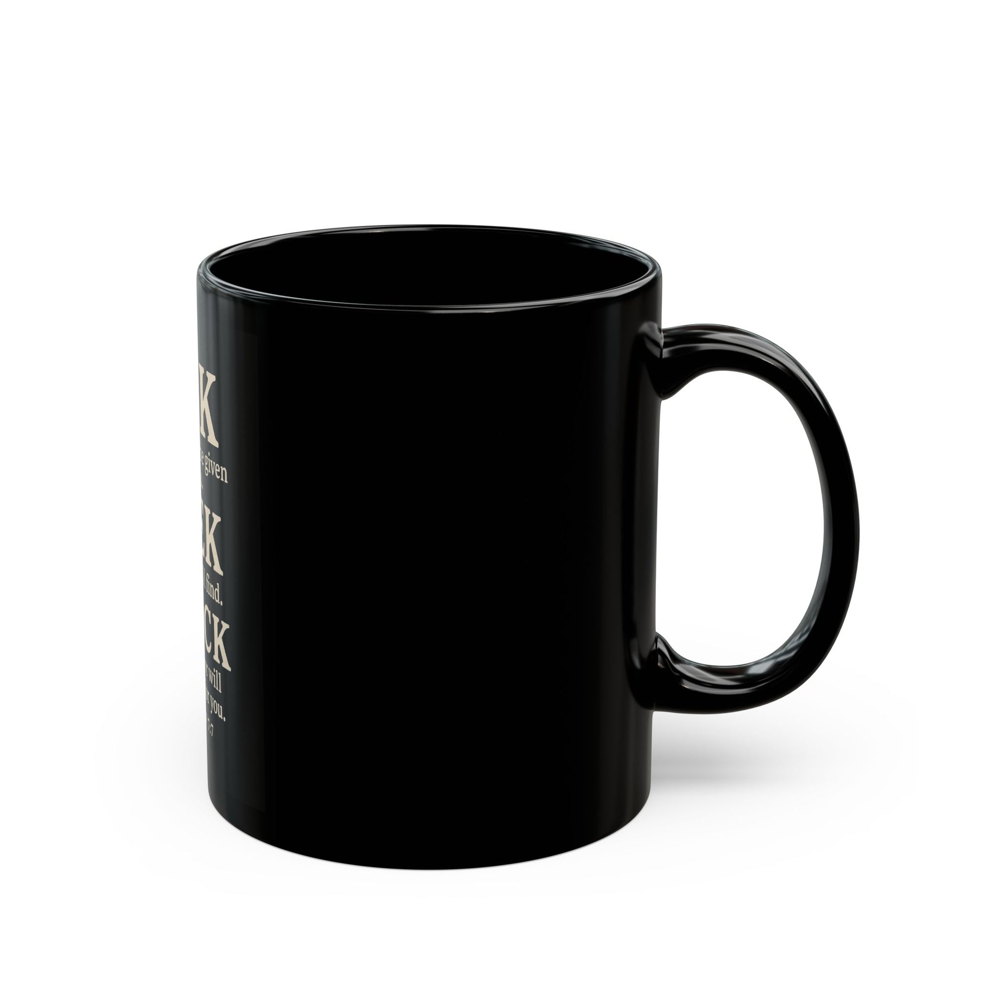 Inspirational Black Mug - Ask, Seek, Knock, Motivational Coffee Cup, Perfect Gift for Grad, Teacher, Faith Lovers, Home Office Decor