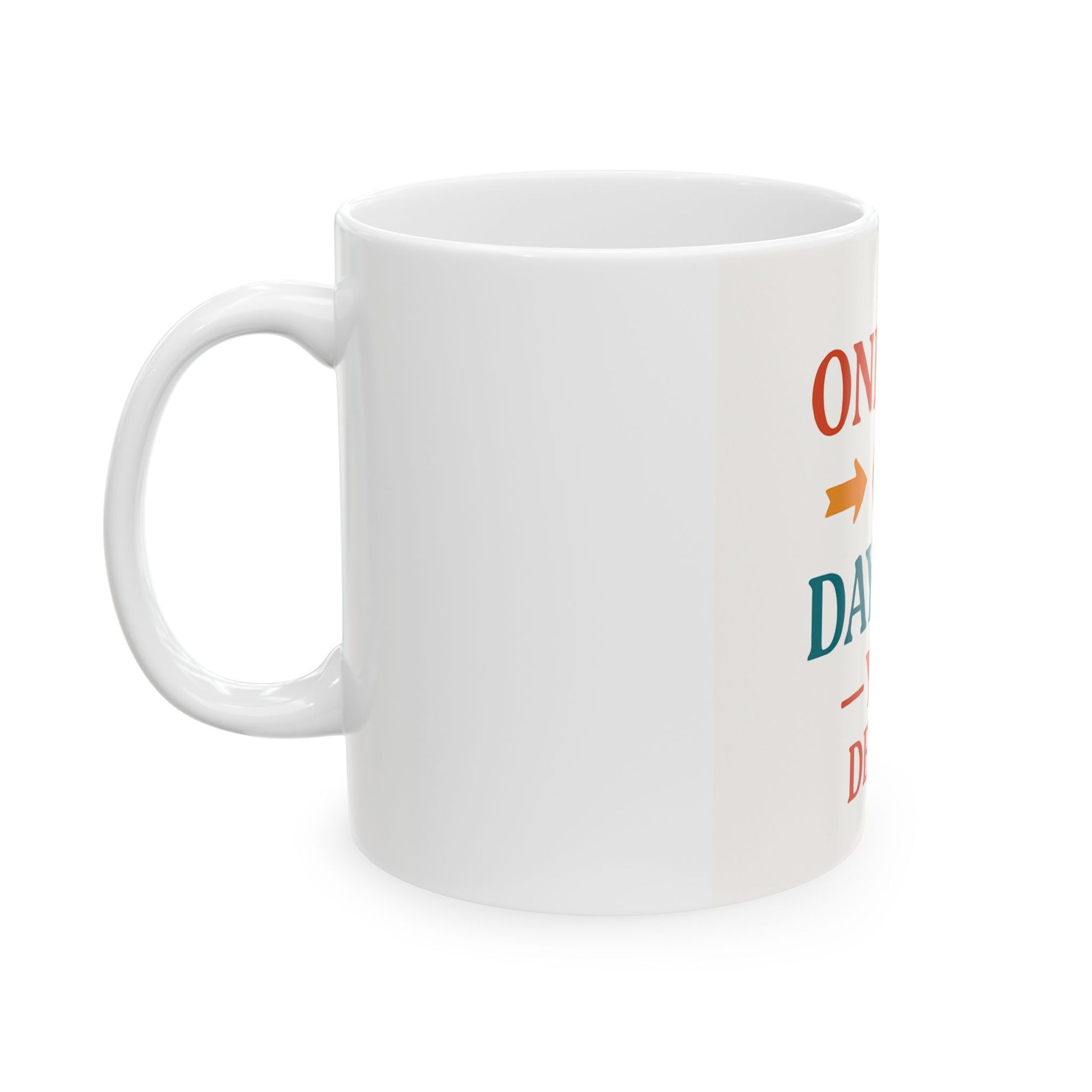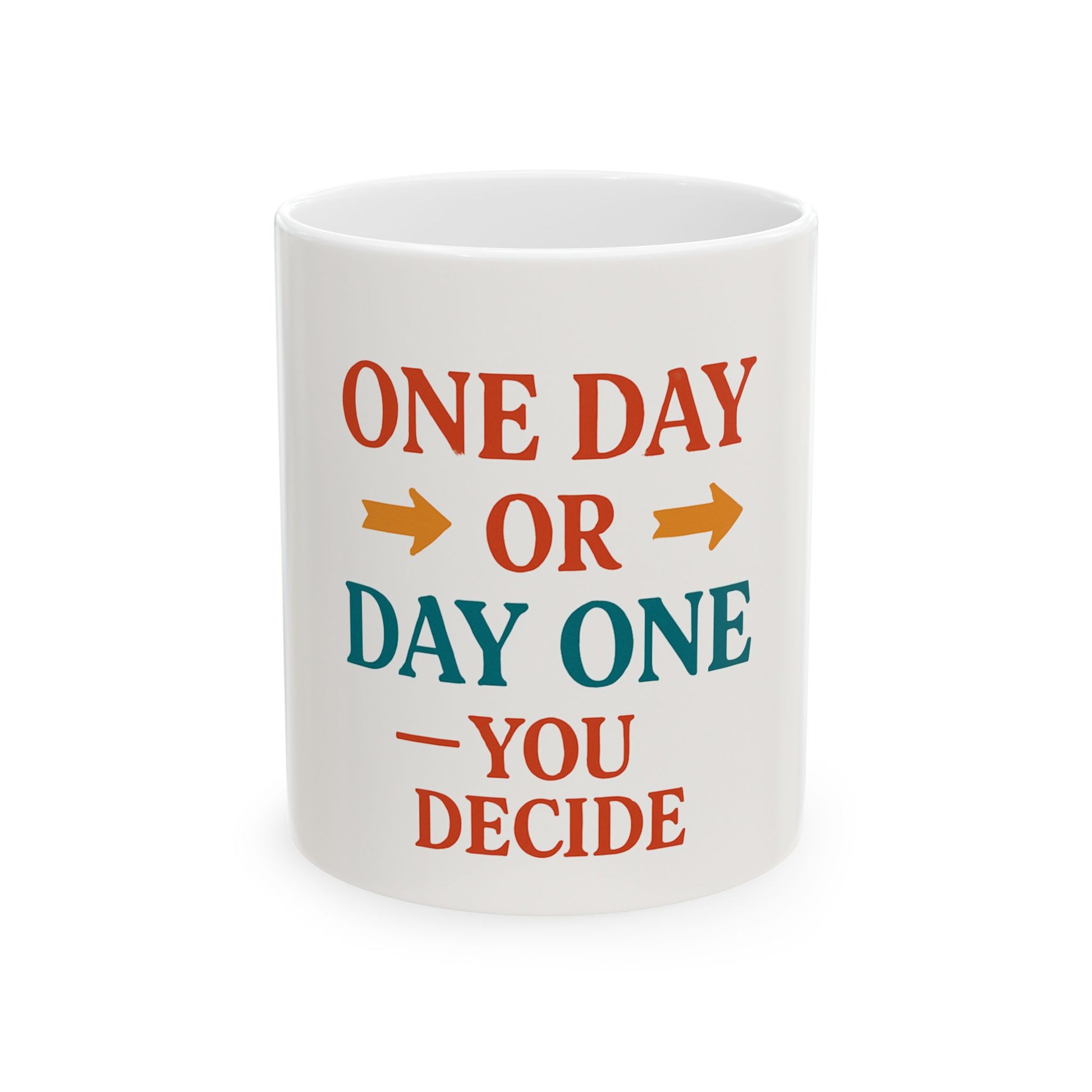 Motivational mug Day One gives a positive and inspirational start to each morning. Perfect for those looking to kickstart their day with a dose of motivation. Ideal for anyone who enjoys starting the day on a positive note or needs a little extra push. Relevant for holidays, birthdays, new beginnings, or as a thoughtful gift for a friend
