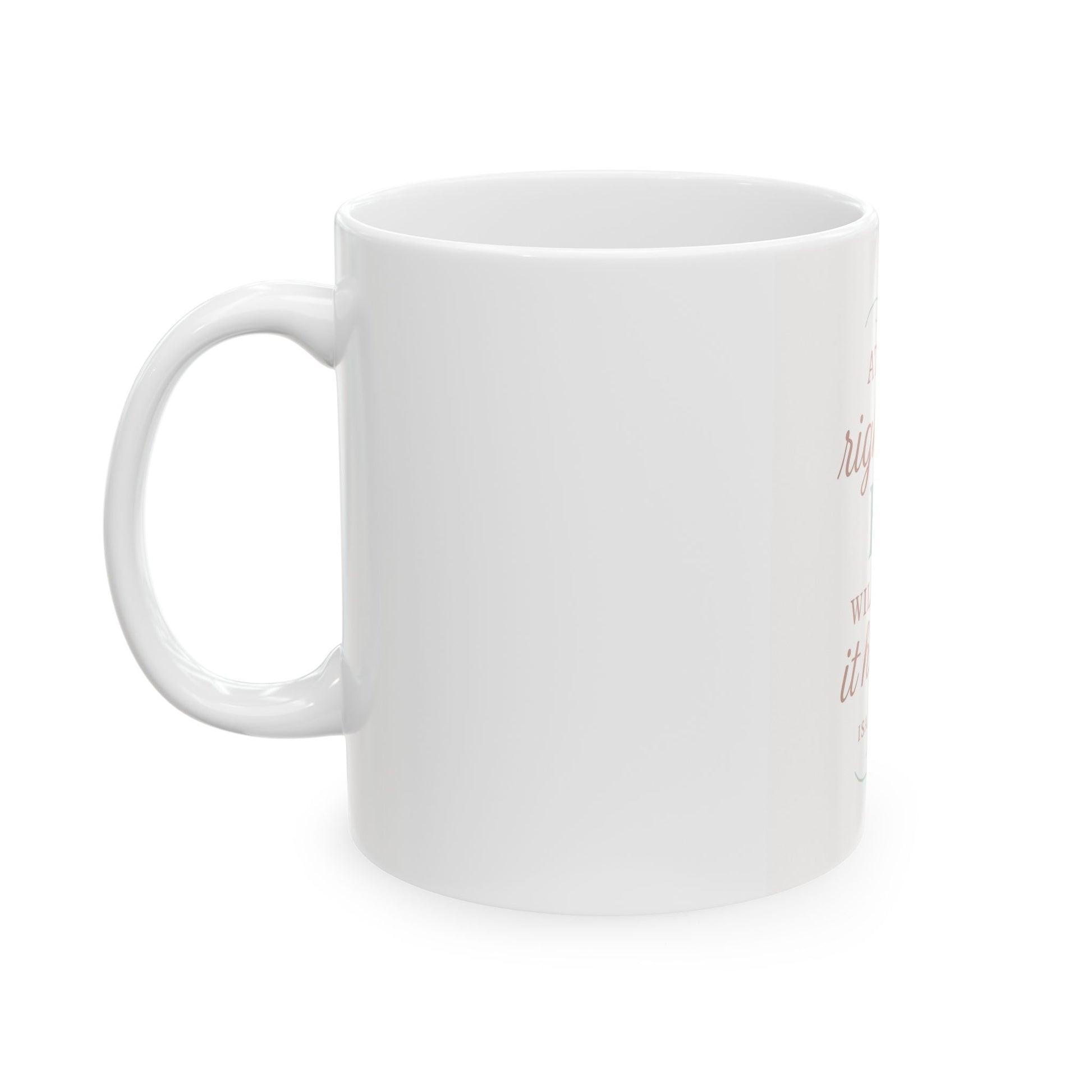 This ceramic mug features a bible quote from Isaiah 60:22, 'he will make it happen.' It provides a motivational and uplifting vibe to start your day. Perfect for believers, Christians, and those seeking daily inspiration. Ideal for gifting on special occasions such as birthdays, religious holidays, or as a token of encouragement.