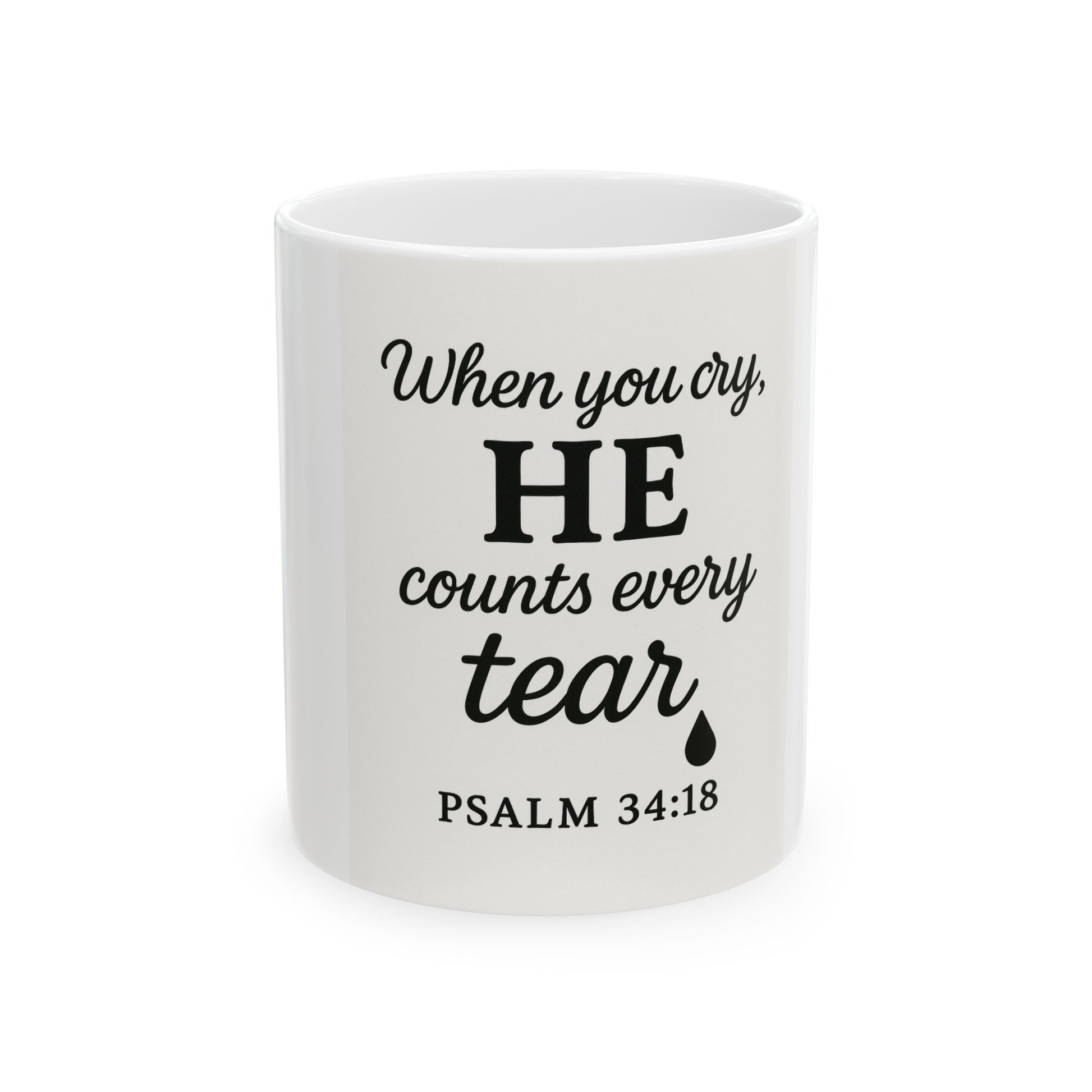 Mug - 'He Counts Every Tear' Inspirational Ceramic Mug, 11oz/15oz